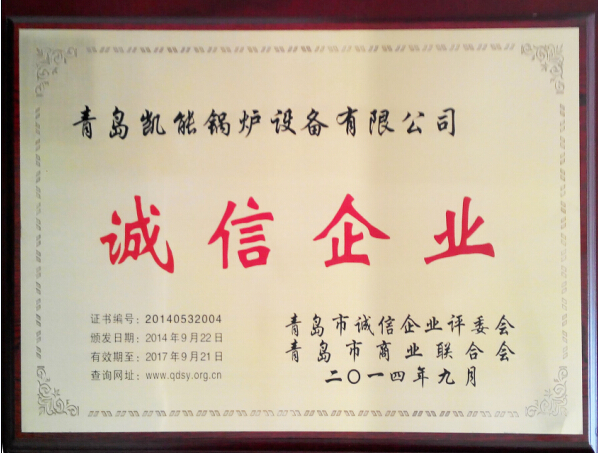 青島凱能鍋爐榮獲2014年度“青島市誠信企業(yè)”榮譽稱號